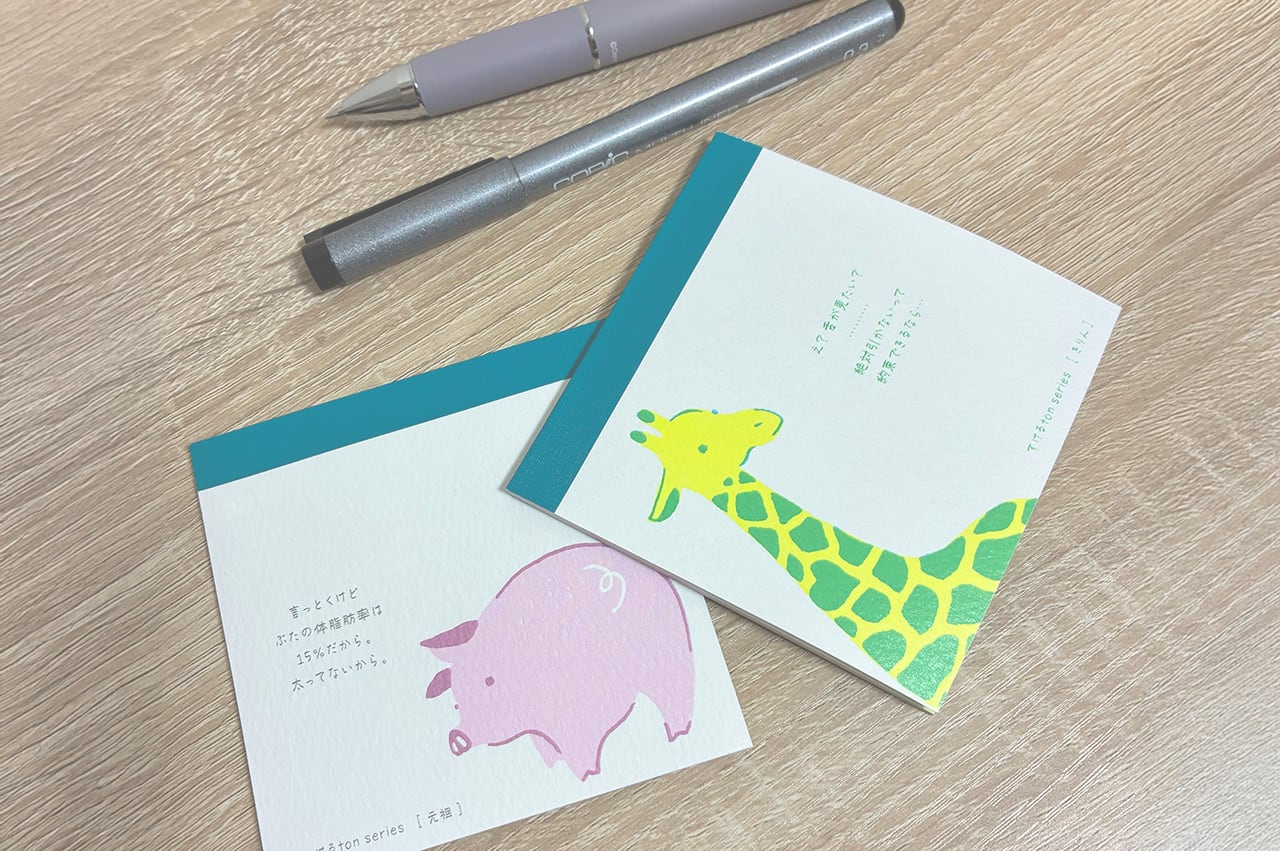 トレーシングペーパーの透け感がかわいい、動物のメモ帳シリーズです。