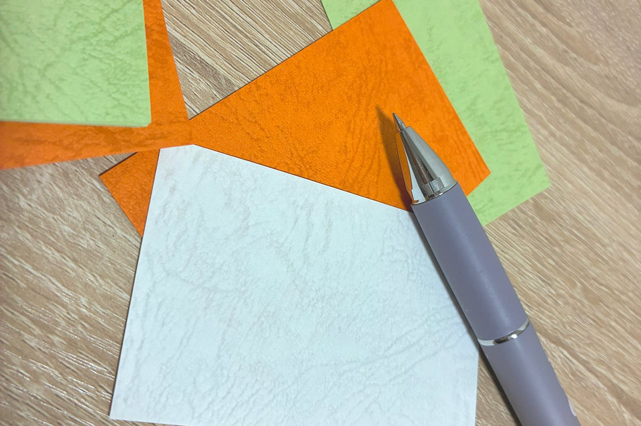 使用たなぼた紙:レザック66 四六判175kg(雪・アボガド・橙)