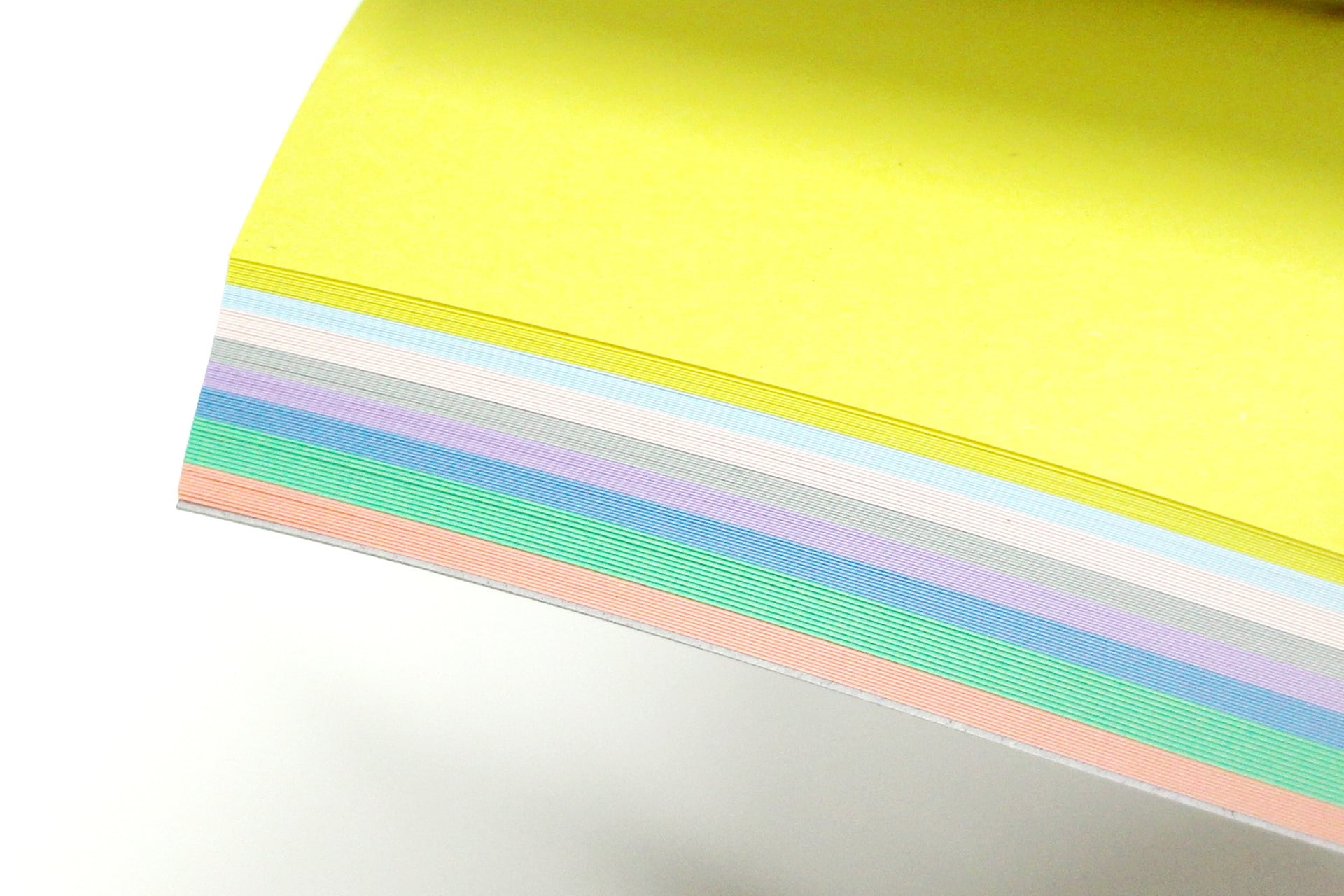 ページごとに変わる色上質紙のカラフルでやさしい色合いを、ぜひお楽しみください。